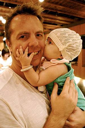 但我還是讓寶寶滿月就坐在桌旁陪我們吃飯,因為我想要她習慣吃飯這件事,